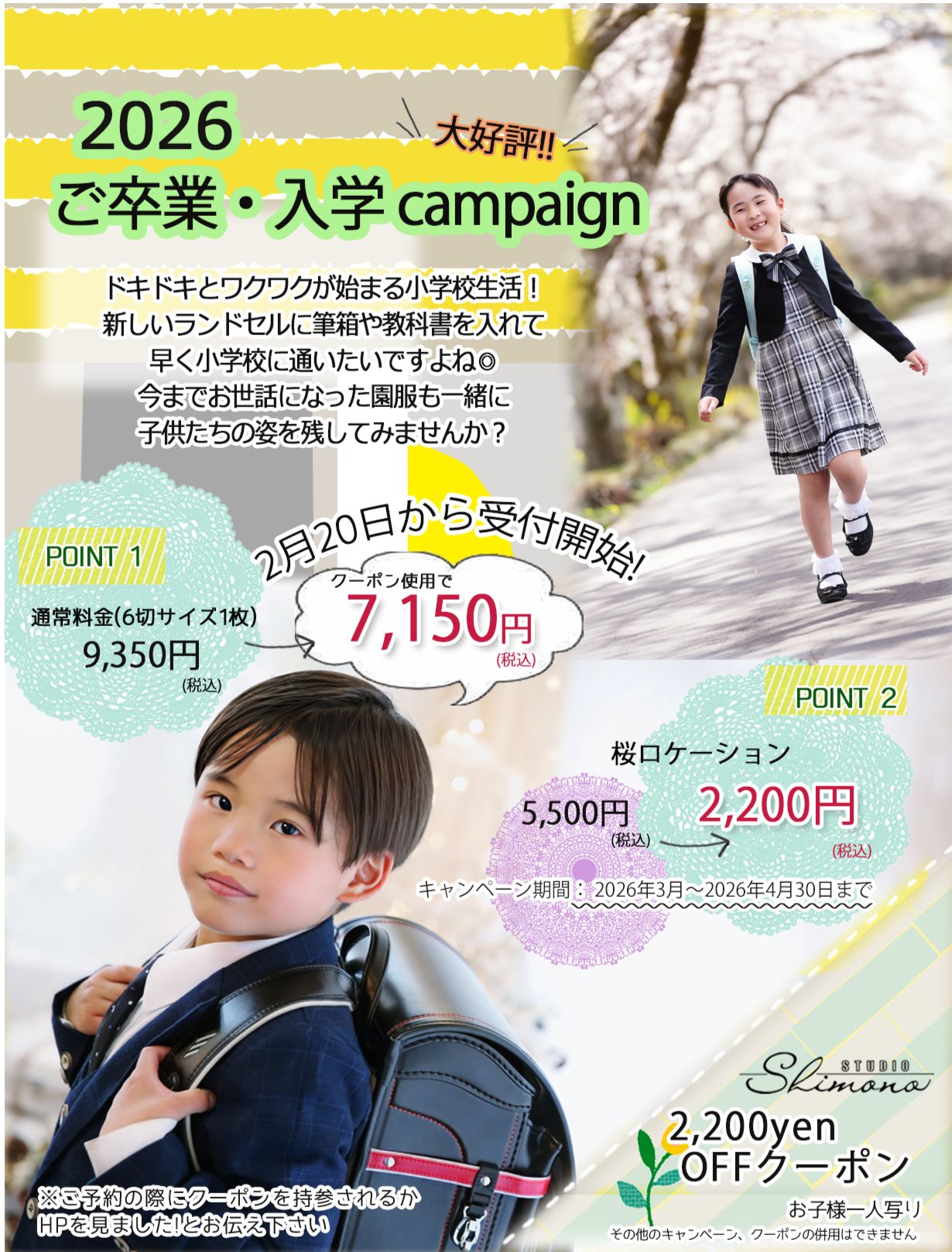 2026.04.01 入学撮影受付開始☆桜ロケ撮影開催中